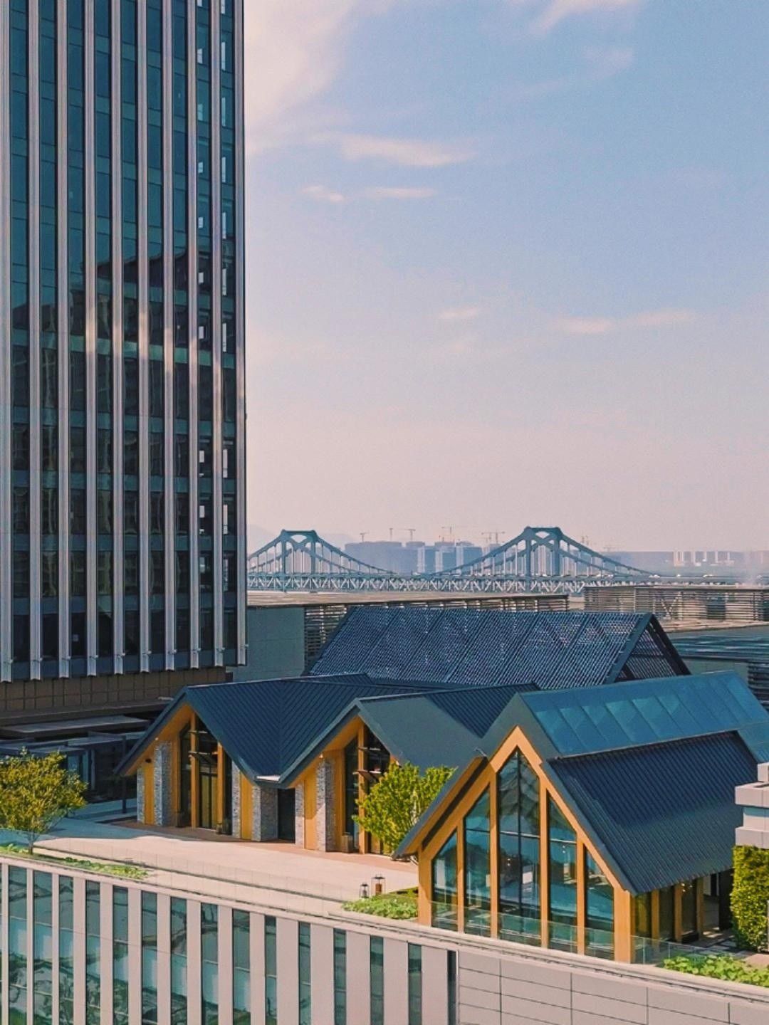 充满杭州文化特色的艺术装饰及设计遍布酒店于客房及公区向人们传递着关于这座城市的美学讯号。以观澜阁为首,汲取江南亭台和丰富水景的设计造诣将文化气息延伸至空间,将访客从城市的喧嚣带入一种幽静私密的氛围中恍如身处千年前的水乡。但当客人迈步踏入广阔的景观屋顶露台上浩渺奔涌的钱江二岸一线江景又在昭示国际杭一往无前的雄心壮志。古典江南文化和现代摩登,在这里融洽如一。