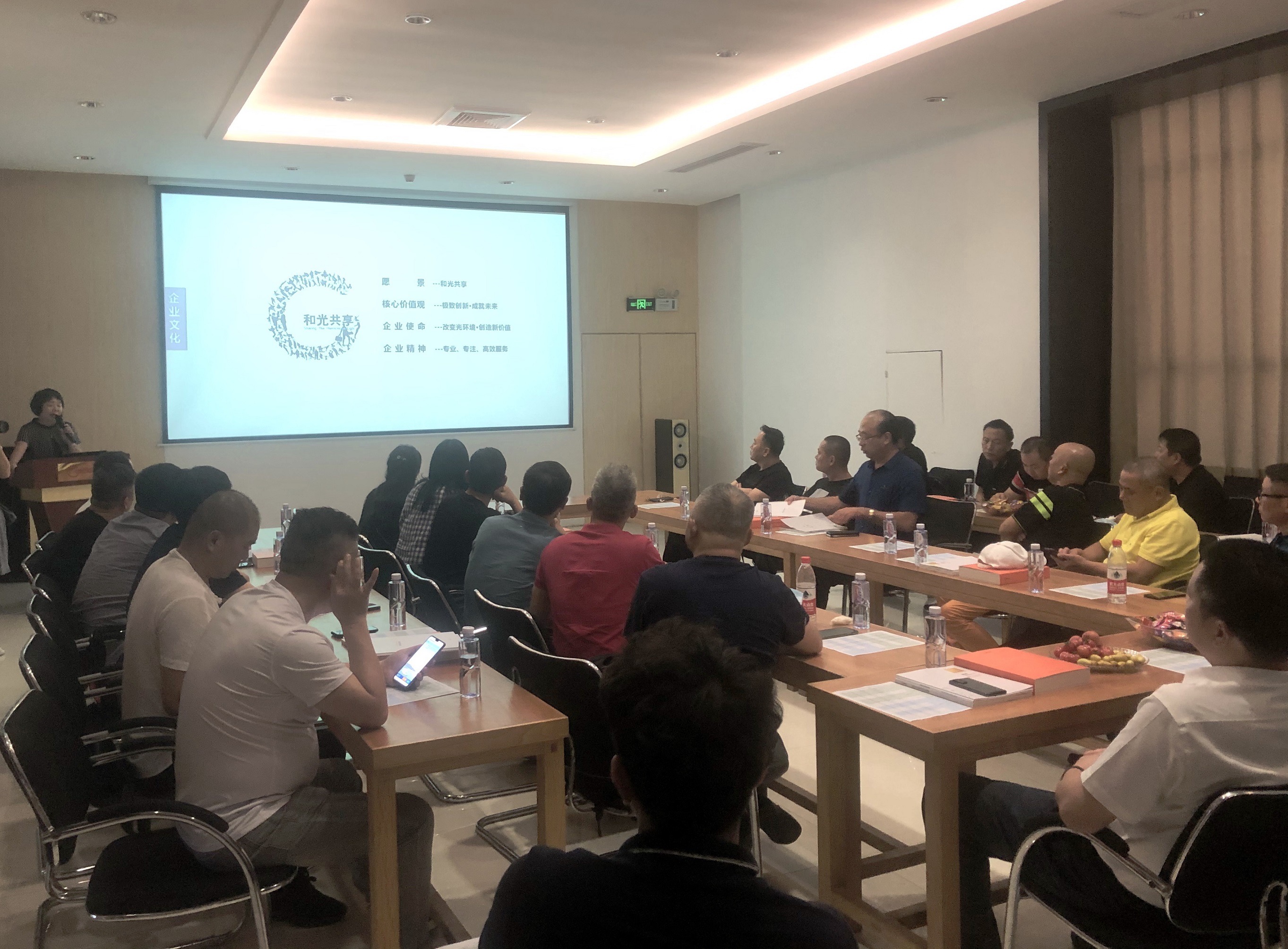 首先品牌部总监张菊女士从公司的简介、技术、产品、案例、品牌等方面给大家介绍了Geosheen极成;接着由总经办工程师黄智诚先生介绍和光共享家新品、智控系统及新形象发布,最后国内营销事业部总经理雷松林先生对和光共享家的相关政策做了详细的介绍。让大家真正感受到这一年多来,Geosheen极成的快速发展。