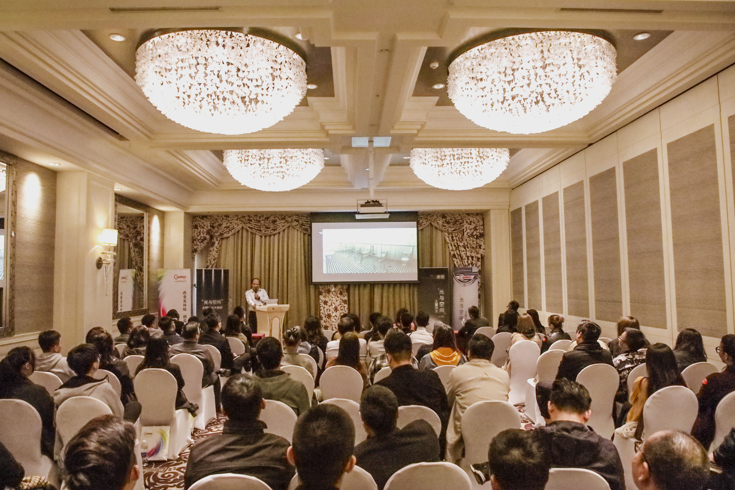 2018年10月26日下午, Geosheen极成光电联合《id+c室内设计与装修》杂志、HUAHE花盒信息化管理系统在大连一方城堡豪华精选酒店成功举办以“光与空间”为主题沙龙。