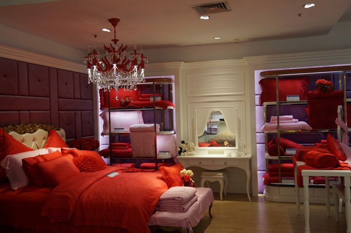 灯光展示温馨高端的水星家纺的品质及风格
