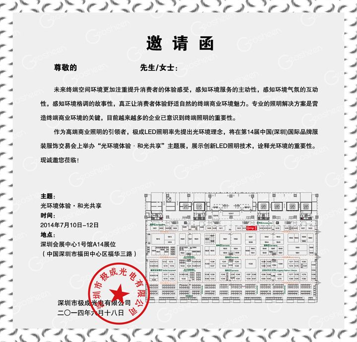 深圳市极成光电有限公司展会邀请函:
