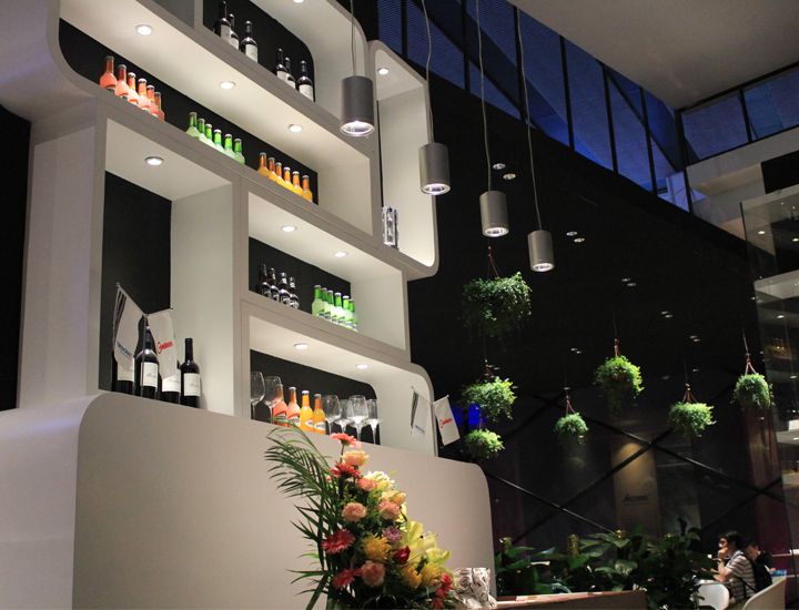走近极成展厅,5.1A02展馆低调奢华的外观设计,很好诠释高端个性,不得不移步进入展馆;走进展厅,服饰区、文化长廊区、休闲区、VIP室、生鲜区等,模拟多种场景,“Less is more”很好地说明了极成智慧的展陈设计,以点带面,让人身临其境,体验灯光的魅力,犹如空间环境中的灵魂,赋予服饰,生鲜、工艺品以生命,环境底蕴都在灯光中升华意境。灯光将服装设计师运用不同色泽、纹理、材质所描绘的服饰画卷诠释得或张扬、或委婉、或正式、或休闲的不同风格,购买者愉悦选择服饰;生鲜区的水果面包在灯光下彰显本来色泽,新鲜可口,秀色可餐,人的眼光随着灯光的指引不断跳跃,消费从来就应该是一种享受。文化长廊、产品展示区在绿植的适当点缀下,节能环保自然舒适的环境氛围跃然纸上。