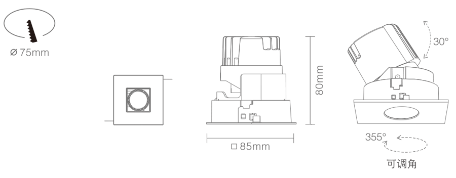 3. Clearance around light fting to be alowed for angular adjustment;保留足够空间以便灯具可作调节角度;