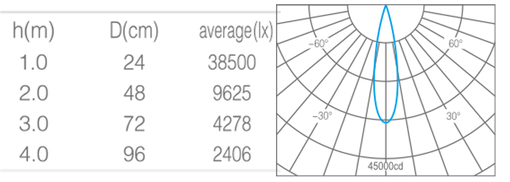 - 光束角15°