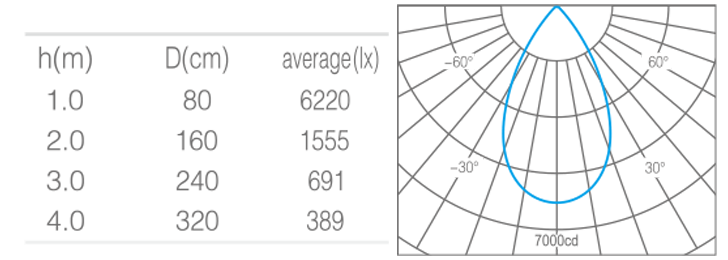 - 光束角50°