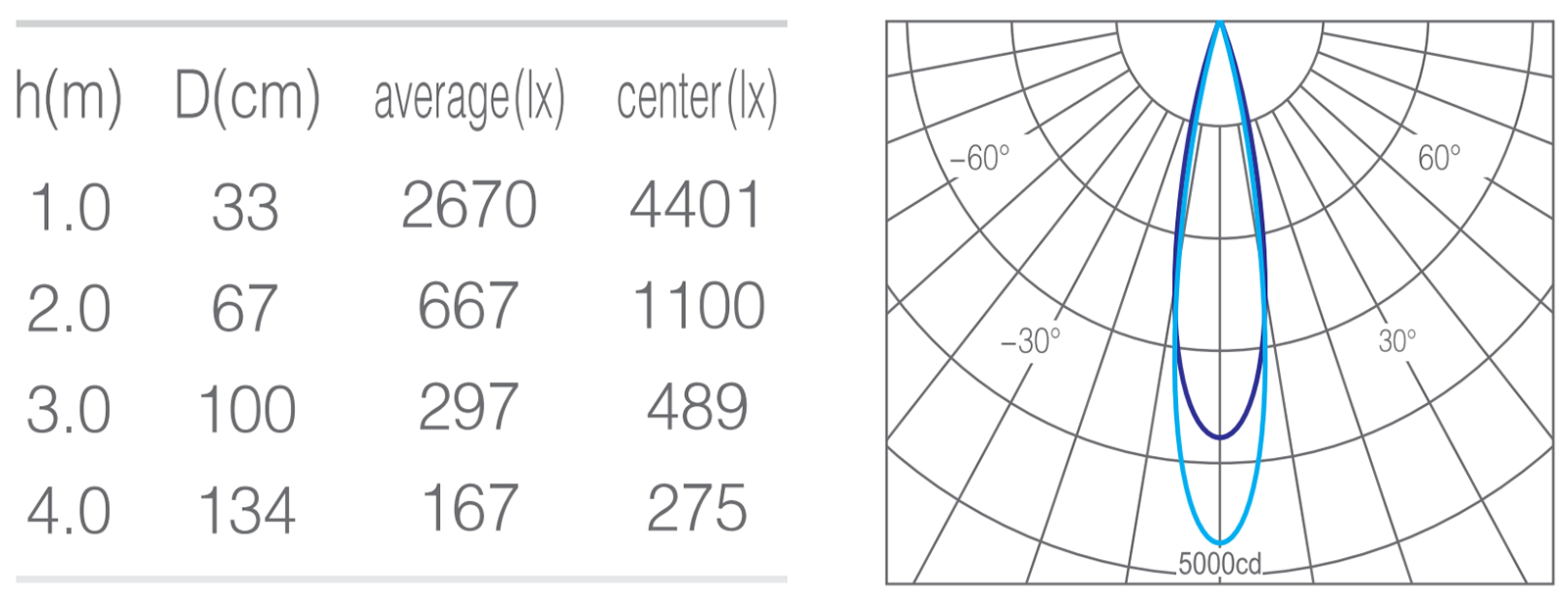 • 峰值光强4000cd