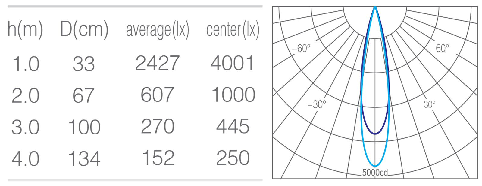 • 峰值光强4000cd