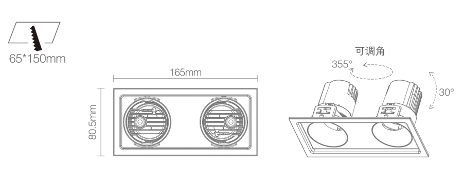 • 开孔尺寸80.5*165