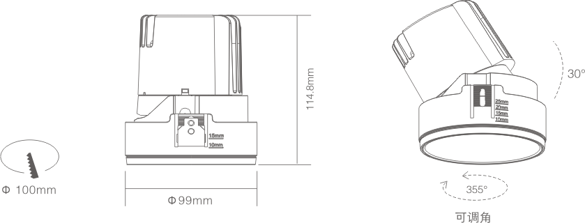 3. Clearance around light fting to be alowed for angular adjustment;保留足够空间以便灯具可作调节角度;