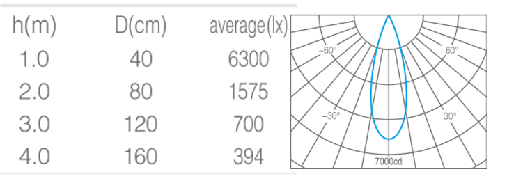 • 光束角25°