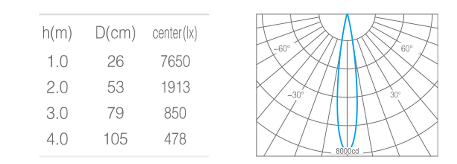 • 峰值光强7650cd