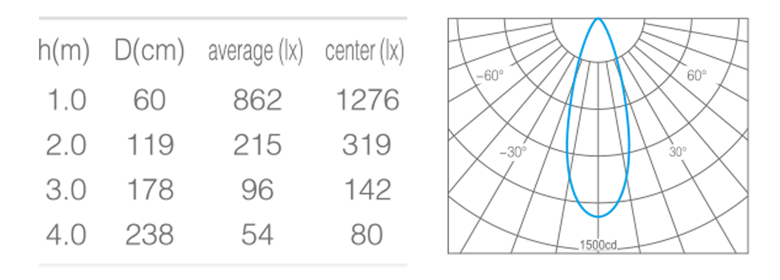 - 峰值光强1276cd