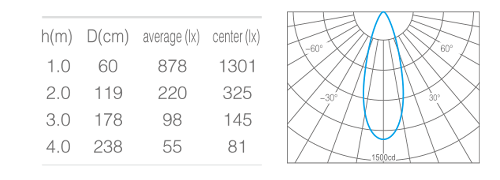 - 峰值光强1301cd