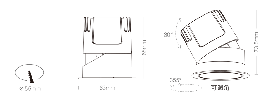 3. Clearance around light fting to be alowed for angular adjustment;保留足够空间以便灯具可作调节角度;