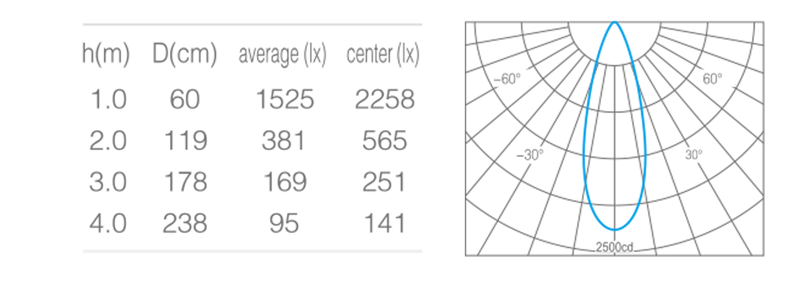 - 峰值光强2258cd