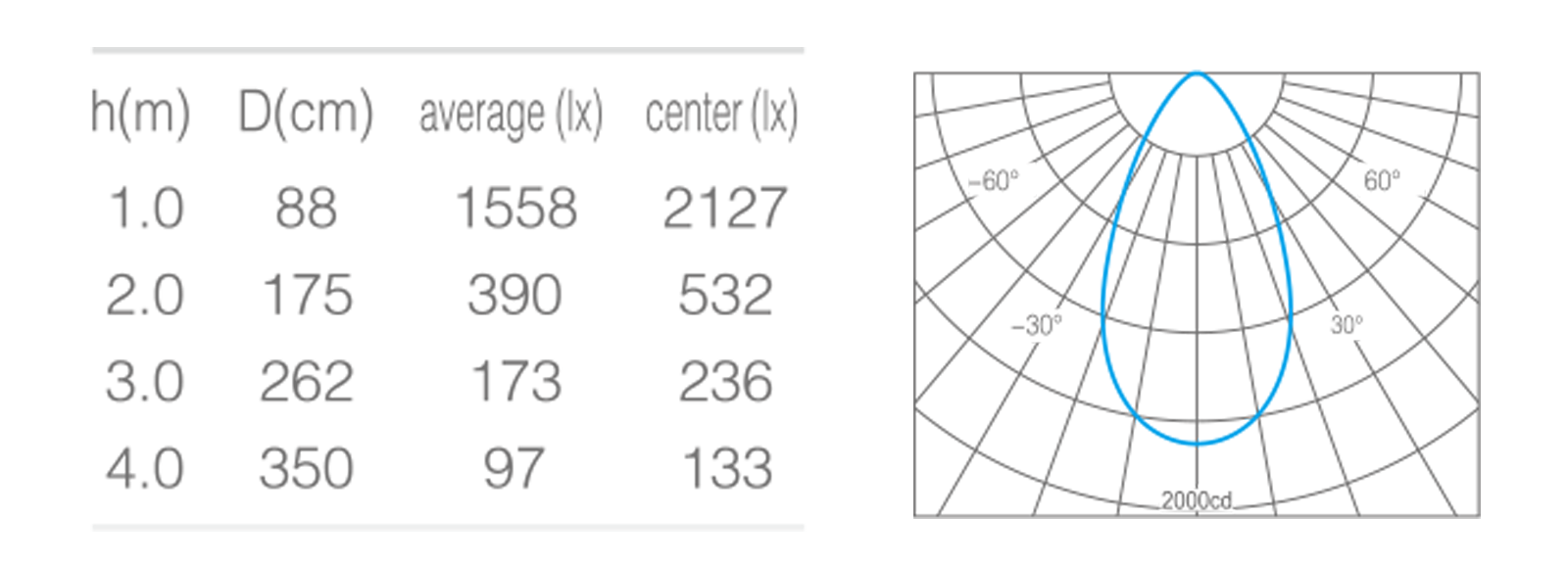 - 光束角50°