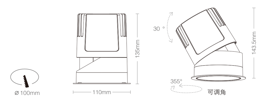 3. Clearance around light fting to be alowed for angular adjustment;保留足够空间以便灯具可作调节角度;