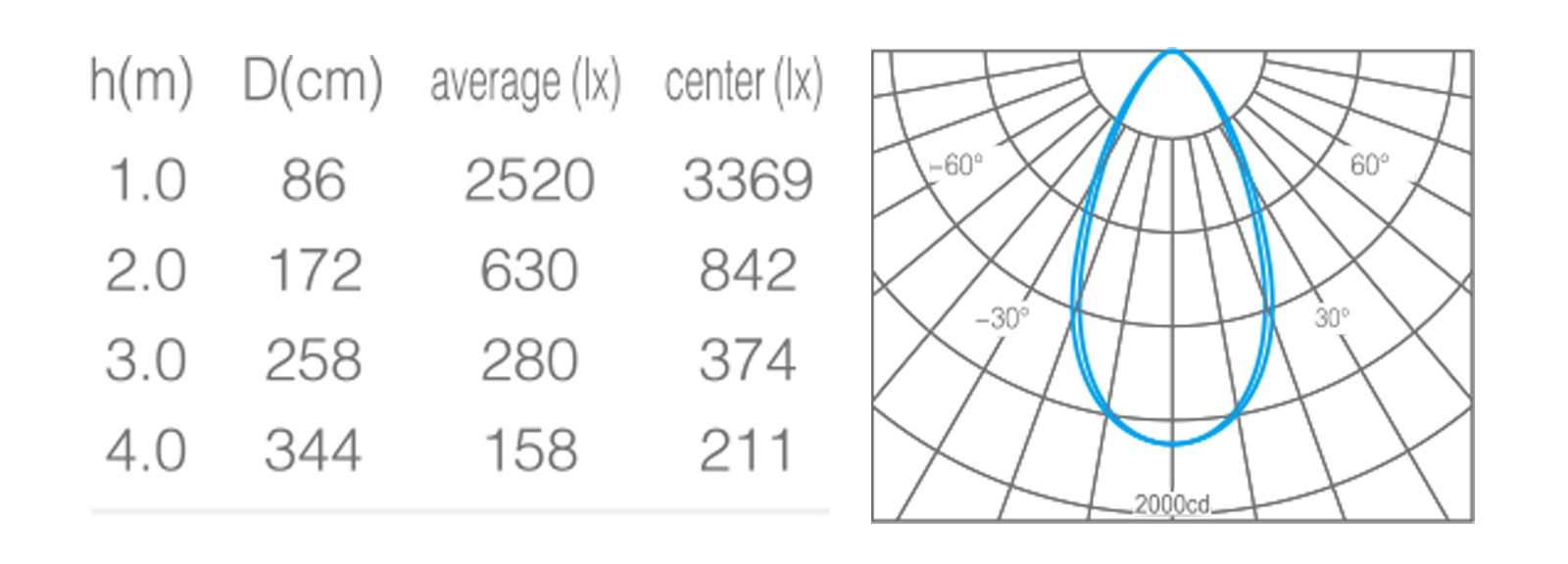 - 光束角50°