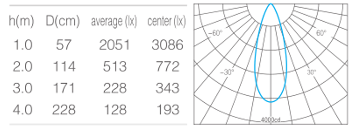 • 光束角15°