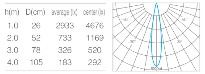 • 光束角15°