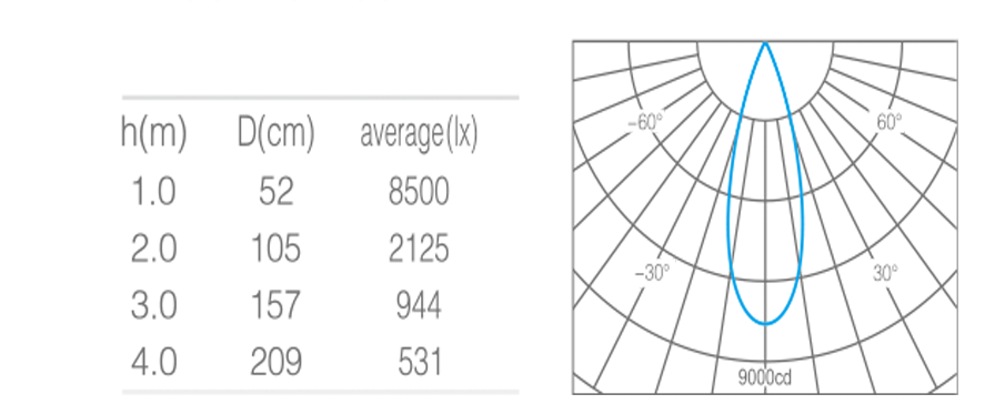 • 光束角30°°