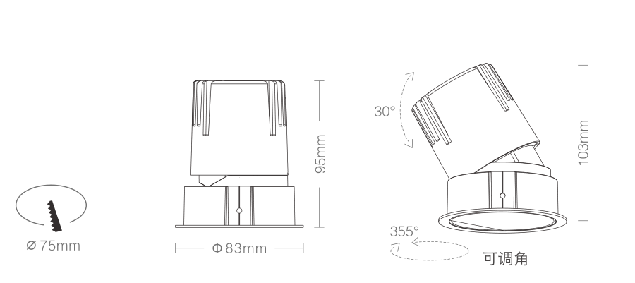 3. Clearance around light fting to be alowed for angular adjustment;保留足够空间以便灯具可作调节角度;