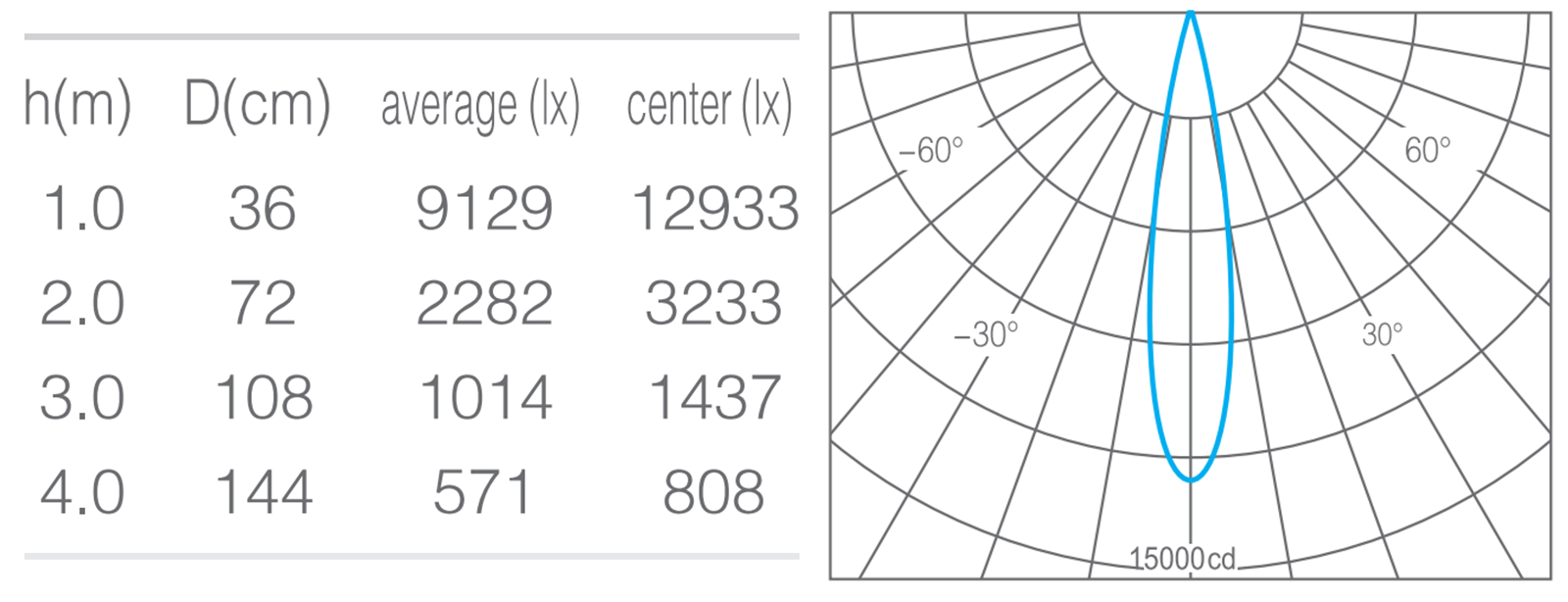 - 光束角15°