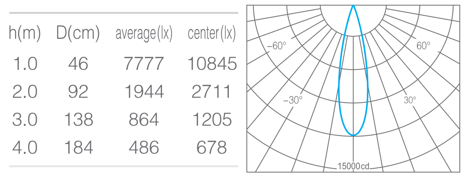 光通量(M) (LUMINOUSFLUX):2190lm、2281lm、2464lm、2464lm (20°)