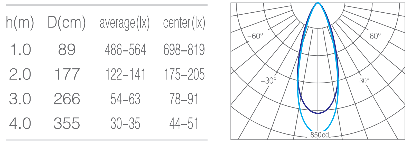 - 光束角50°