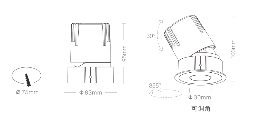 3. Clearance around light fting to be alowed for angular adjustment;保留足够空间以便灯具可作调节角度;