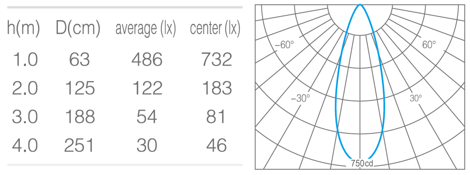 光通量(M) (LUMINOUSFLUX):297lm、310lm、340lm (40°)