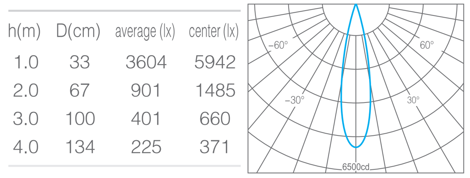 光通量(M) (LUMINOUSFLUX):684lm、728lm、801lm (20°)