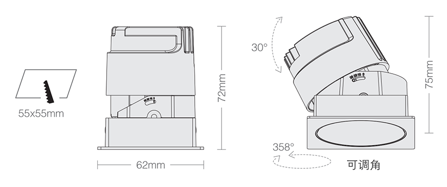 3. Clearance around light fting to be alowed for angular adjustment;保留足够空间以便灯具可作调节角度;