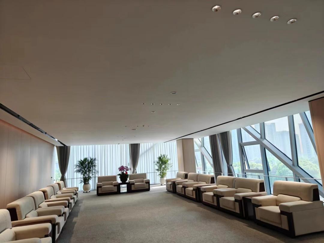 公共区的整体设计风格与接待区域一脉相承,呈现出一种和谐统一的美感。Geosheen极成防眩天花灯巧妙地隐藏在凹槽之中,既保证了照明效果,又避免了眩光的干扰。这款灯具拥有核心防眩专利光学技术,平口防眩杯设计,能够实现全方位调节,确保光线均匀分布,不产生漏光现象。在这样的照明下,整个空间显得宽敞明亮,简洁而不失高雅,营造出一种舒适宜人的氛围。