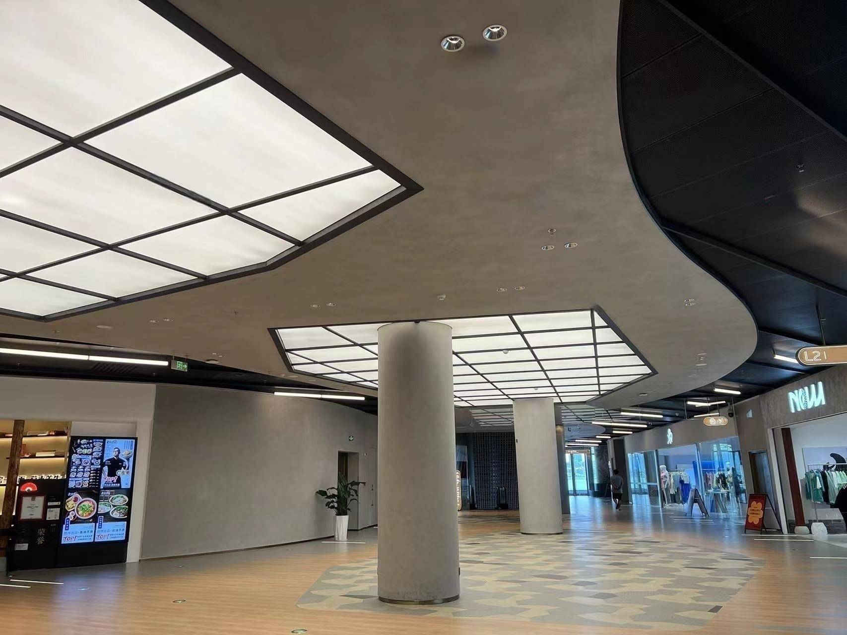 内部店铺点位打破;传统商业综合体常规理念;采用不规则的曲线陈列方式;令各个商铺错落有致。设计上强调自然材质的运用;搭配精心配置的室内绿植景观;与专业灯光相结合,令街区呈现出曲径通幽的形态;给人以趣味惊喜和更具未来想象与艺术体验感。