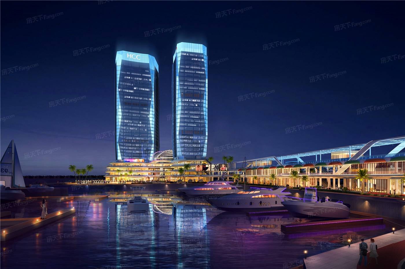 HCC/立于三面环海的区位优势;营造"露台外摆"的浪漫氛围;结合商业的“绿色效应将特色布置的露台与专业灯光、绿植融合;将商业建筑与城市文化、自然、以及消费者融合。