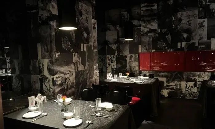 餐桌区域灯光应用上主要使用内嵌射灯,围绕餐桌作重点照明,呈现出食物的色泽,整体灯光只点染餐桌及装饰画区域,与周围环境形成明暗对比的照明氛围,给顾客带来一丝的空间私密性,更专注于用餐。