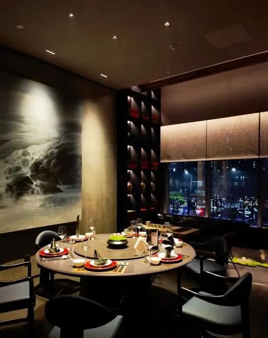 餐饮区更注重对进餐氛围的营造,极简风格的环境中却透出低调的奢华,每处摆设都很有讲究,给人一种高级感!有研究证明,暖色温营造出的灯光效果,会更加速人的血液流动,可以刺激人的食欲。