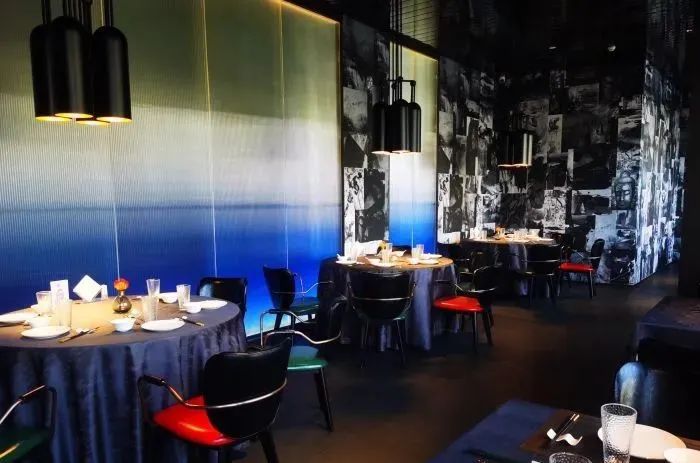 局部照明设计是灯光设计灵魂,总体空间的照度不要求很高,以人员能够正常活动的最低照度为准,在每一个桌面上装一盏装饰吊灯做重点照明,灯具保持适当的距离,可以更好地塑造私密感和时尚感。