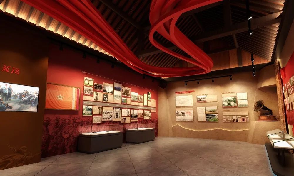 馆内散发着浓厚的红色气息整体墙壁与配色