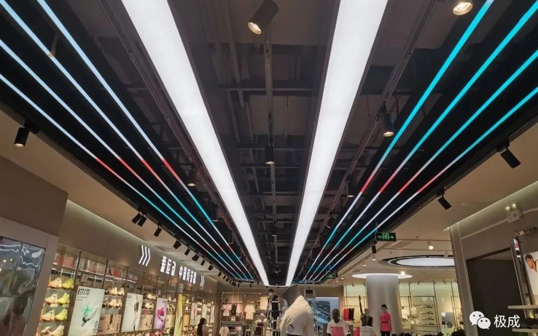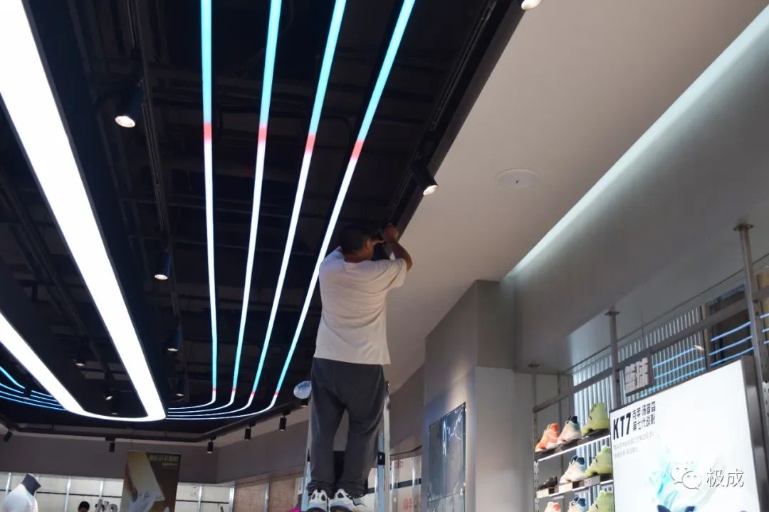 Geosheen极成作为安踏品牌旗舰店的长期合作供应商,专为安踏旗舰店提供系统化的灯具定制和一系列的配套服务,以专业的灯光彰显安踏匠心独运的产品与独领风骚的品牌个性。