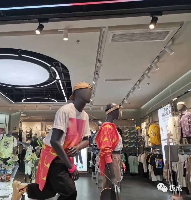Geosheen极成轨道灯作为安踏旗舰店(深圳宝安区壹方城)内的主要角色,优质的显色性和光色一致性,可调角控制等实现理想的照明,高贵的哑黑、优雅的白色可选,满足多种装修风格的需求。