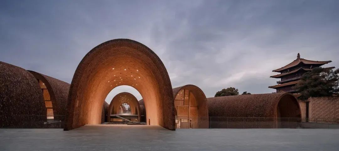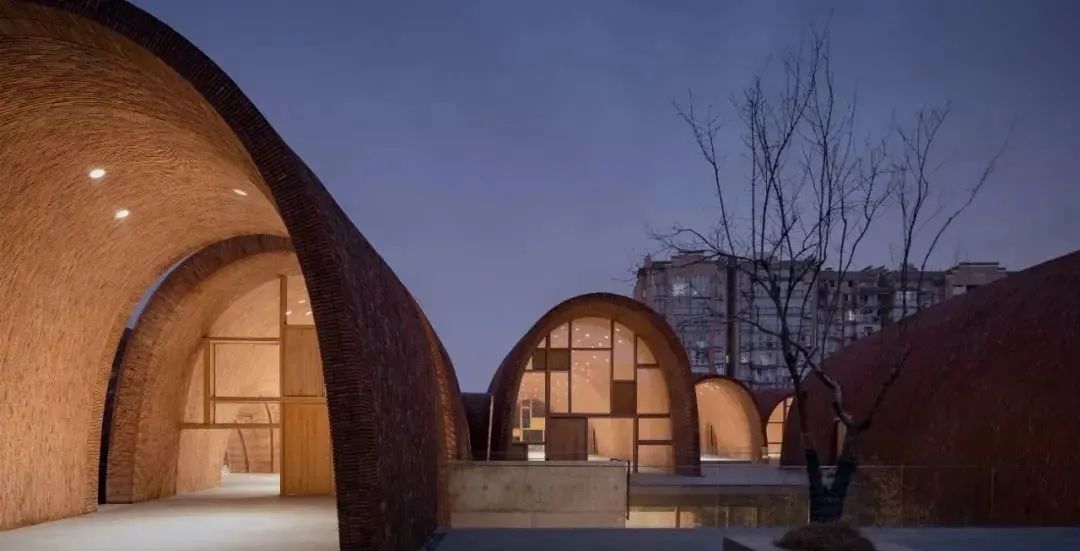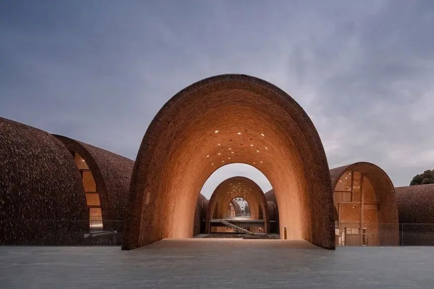 博物馆建筑以模仿老砖窑的拱顶为建筑语言,由八个长度不一、大小各异的多曲面钢筋混凝土拱体结构构成,拱顶借鉴传统窑炉的砌筑工艺,通过内外两侧两层砖之间浇筑混凝土手工建造。