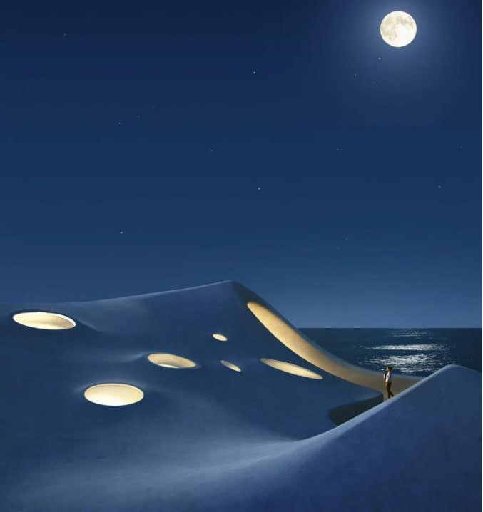 月光映照出白色建筑的轮廓