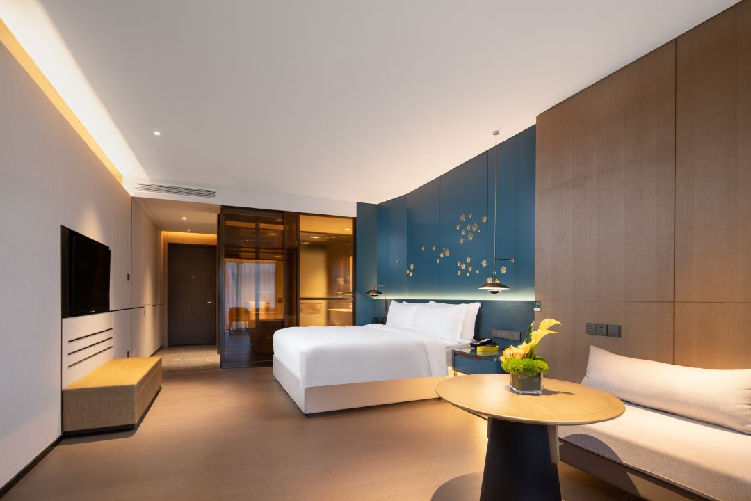 205间美荟客房分为色彩较丰富和偏清新淡雅的两种不同风格。暖色调基础照明与天花顶的射灯相辅相成,造出舒适温馨之感。实现功能与品质同在的舒适住宿原则,客房设计简单精致蕴含巧思,为每位宾客呈现文质典雅的体验。