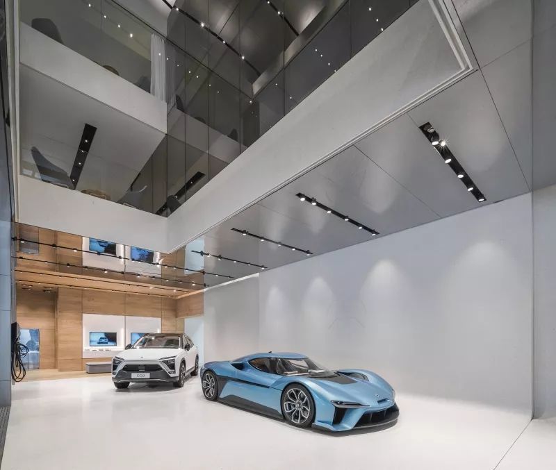汽车展示区域的照明是整个汽车展厅照明的重中之重。从图片上可以看到,NIO house 展厅对电动汽车的展示照明把控精准。