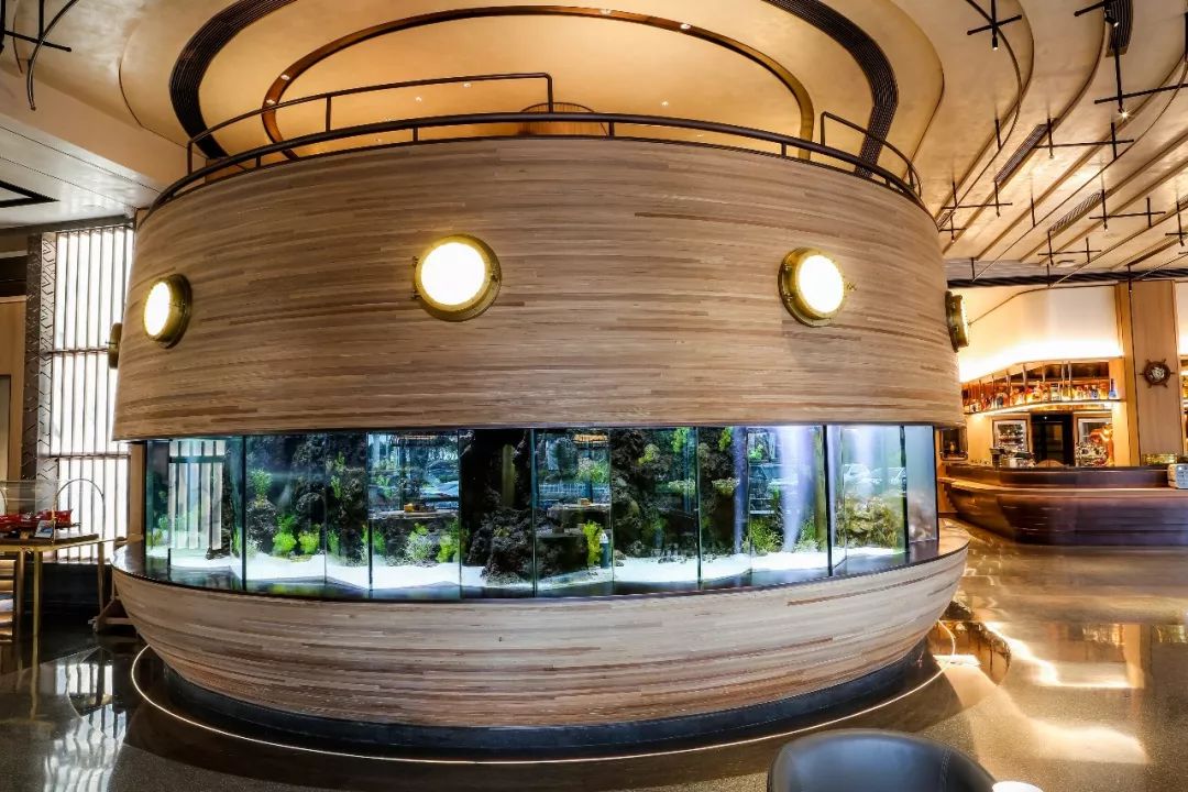 ▲ 哈尔滨鱼乐以10°窄光束灯具在地面打出光晕柔和的光斑,照亮走道,也做动线引导