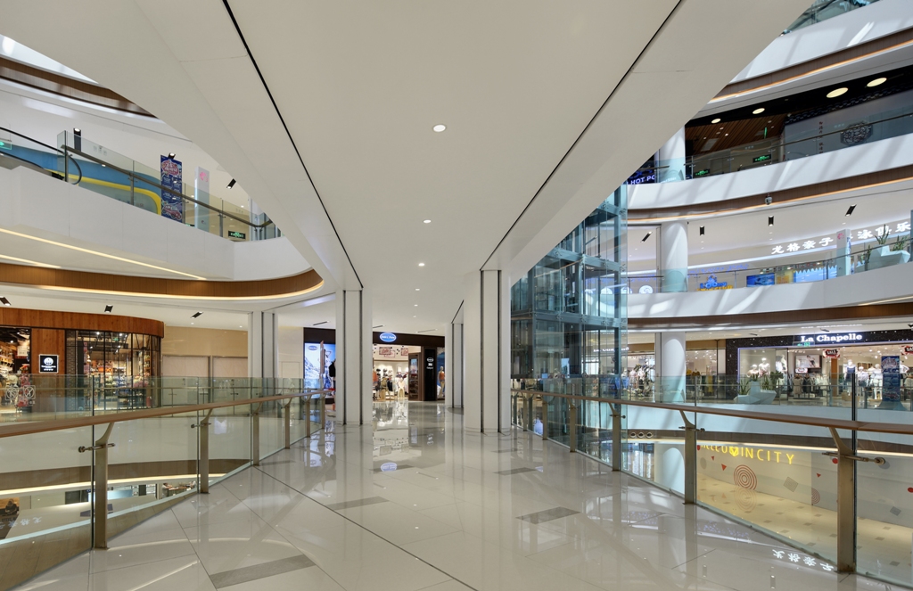 购物中心动线区域的光线分布应均匀,亮度比例要均衡。