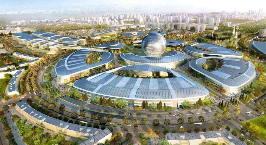 各场馆合起来是一个水滴的形状,体现清洁可循环的主题,场馆中心的玻璃球型建筑为哈萨克斯坦馆,四周则是100多个参展国的国际馆及主题馆,企业馆。在备受关注的哈萨克斯坦2017阿斯塔纳世博会上,哈萨克斯坦馆、中国馆、印度馆、俄罗斯馆、上合馆等全部对外开放。